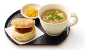 >>1 豚汁卵かけごはん朝食  280円 卵かけごはんをイメージしたライスバーガーが付く「モスの朝ライスバーガー 朝御膳」  380円 朝御膳www スイーツ風味にして100円ぼったくるモスww