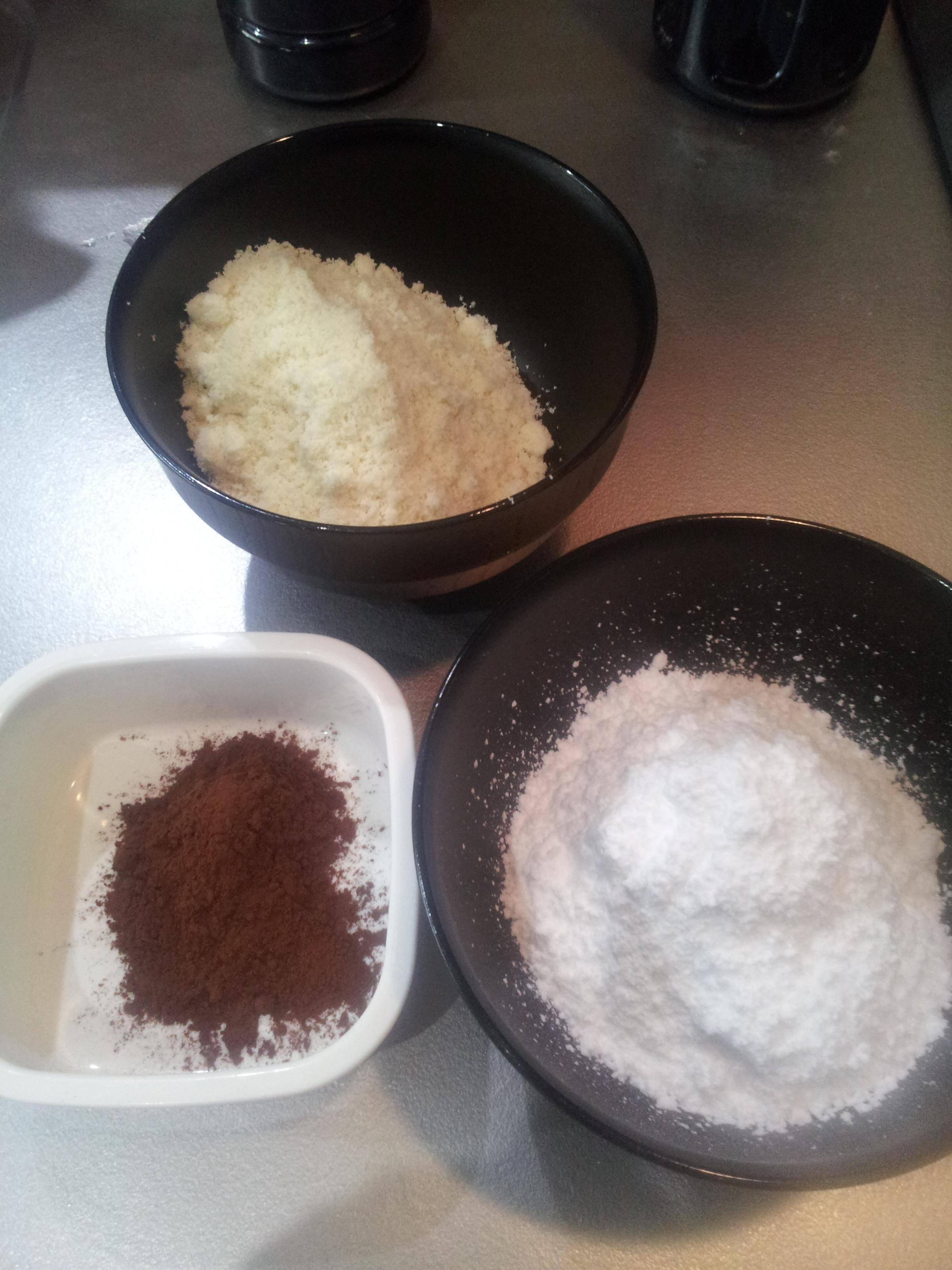 用意するのは粉糖とアーモンドプードル、ココアパウダー、あとは卵白でござい。