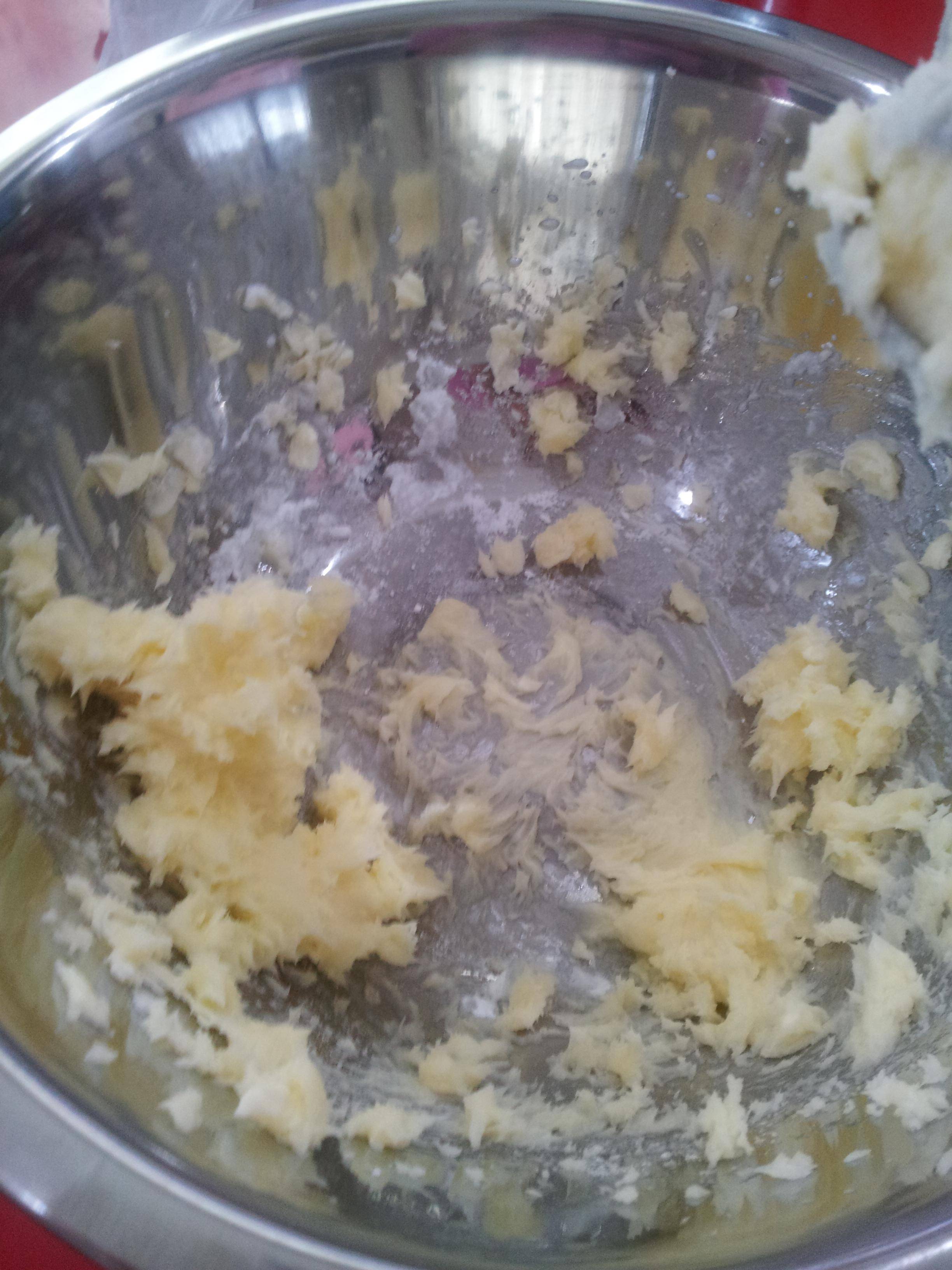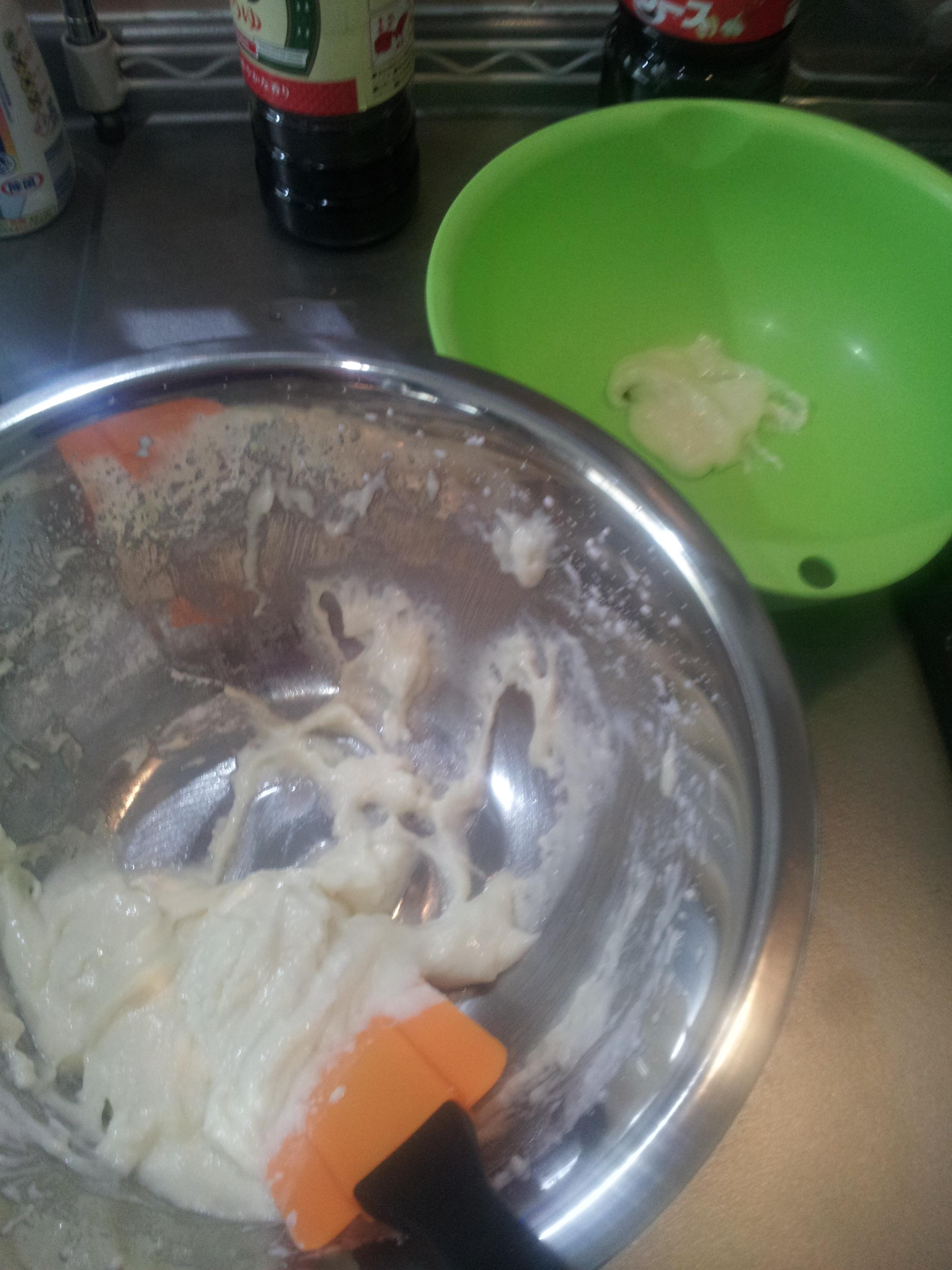 混ざったら生地を少しだけ別のボウルに分けておく。