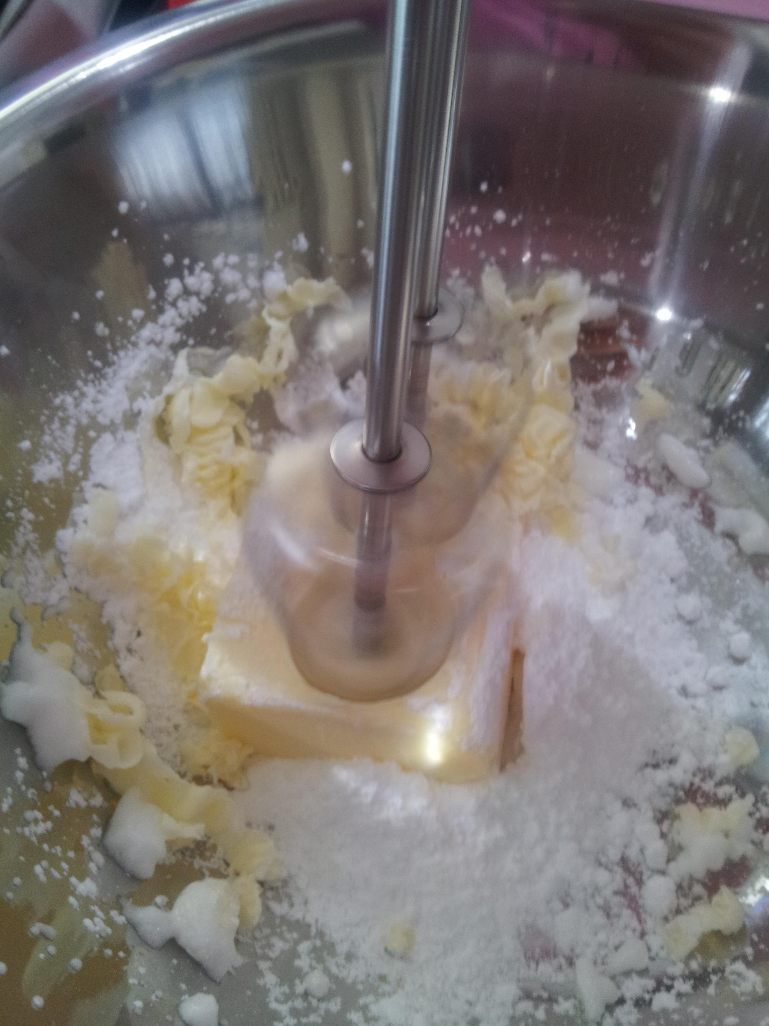 粉糖を数回に分けていれながら混ぜるよ!