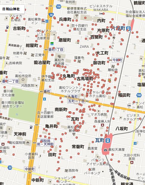 市街地のうどん屋の数を調べた結果wwwwwwwwww