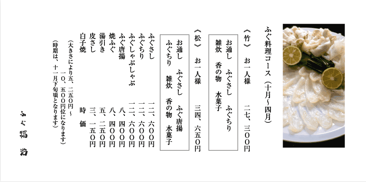 てっさ唐揚げふぐちり雑炊コース食いてえ