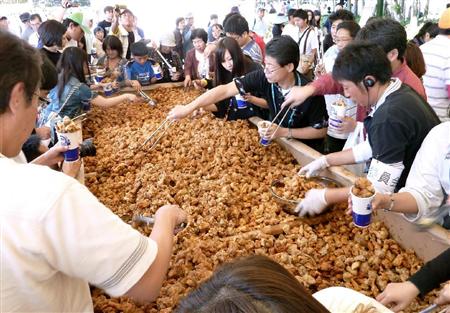 大分県中津市で9月に開かれた「第4回からあげフェスティバル」で、一度に1076キロの空揚げを