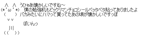 ビックリマンチョコと口ずさんだ日には、親とバーチャンがゲラゲラ笑っていたっけなw