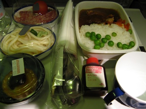 機内食は普通に出されるものよりビジネスのメニューから頼むうどんやカレーが美味い