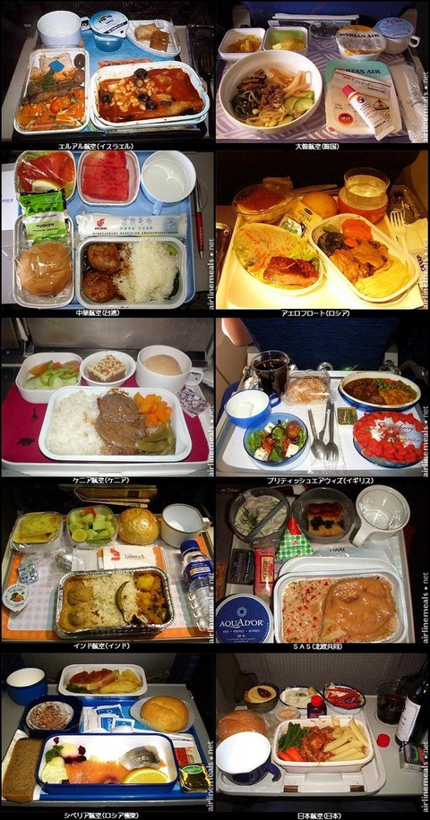 大陸の航空会社のエコノミーの機内食は残飯だぞ