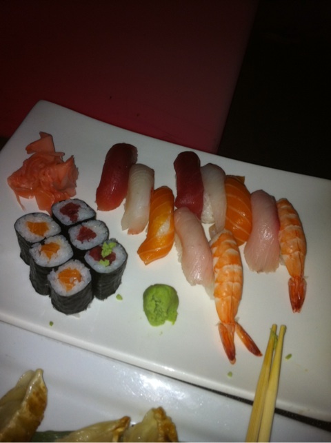 見たところよくある日本料理店の天ぷらです。ただソースも天つゆではなさそうだし、盛りつけ方が日本人ではないですね。寿司の盛りつけも日本人ではないですね。