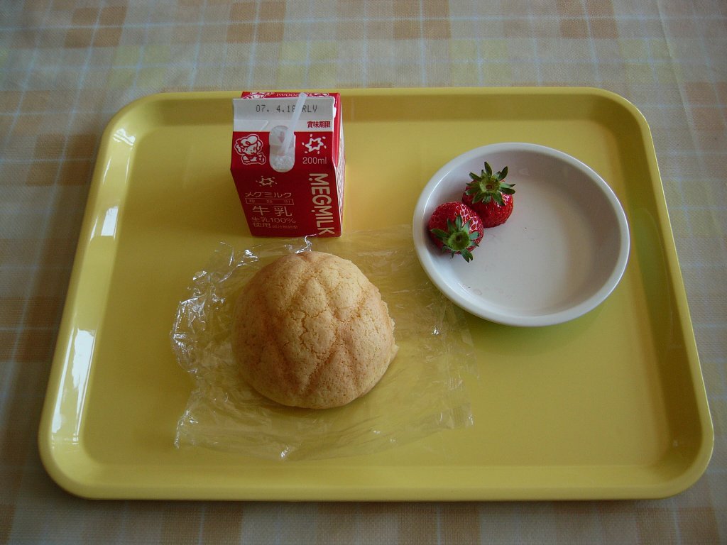 ようやく写真撮影に成功し、最初の給食紹介は5月8日付で行われた。掲載されたのは、8日当日と前の週に