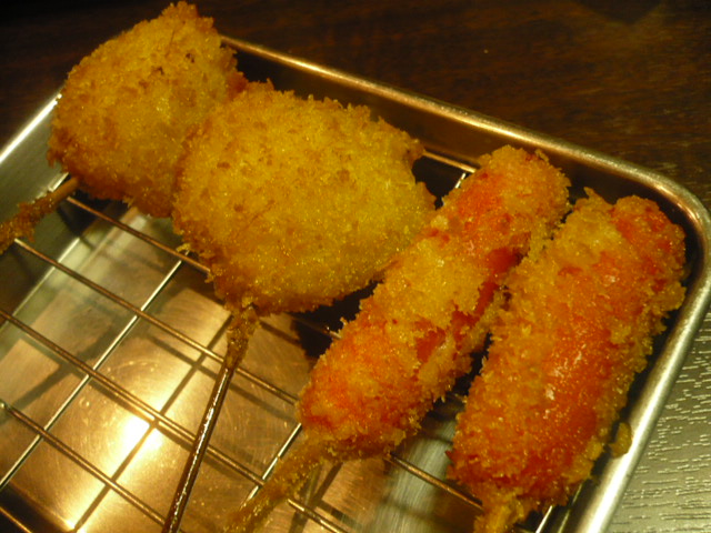 ↑炭火正解。他は多めの油で揚げる。本文みたいに衣は付けない。それにピクルスのみじん切りみたいのか、酢漬けのキャベツみたいのと一緒にコッペパンにはさむ。