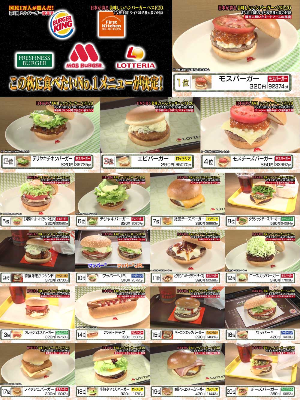 日本でおなじみのハンバーガー店5社がエントリーした自慢の商品を対象に、国民1万人による人気投票を実施。国民