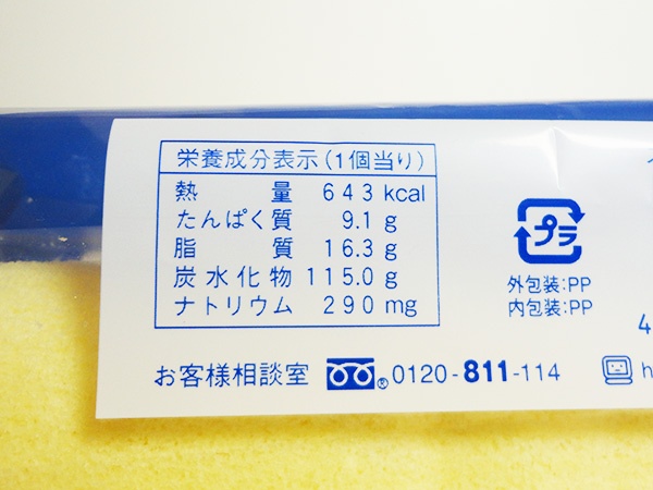 スイスロールバニラ(ヤマザキ製パン)/1個当たり643kcal