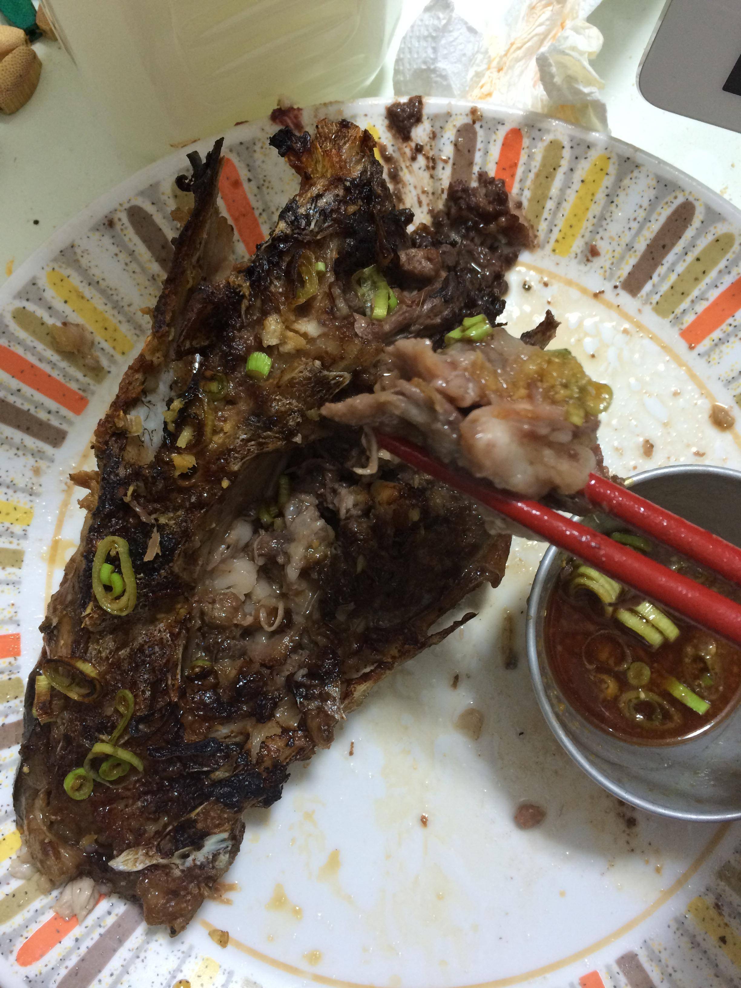 身をこそぎ落としてどんぶりに熱々のご飯ついで身を乗っけて白だしと醤油を適量かけていただきます