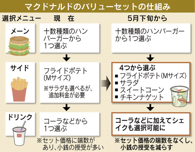バーガー類は最大で300円、ポテトSで100円、シェイクSで100円ぐらいが妥当だな。