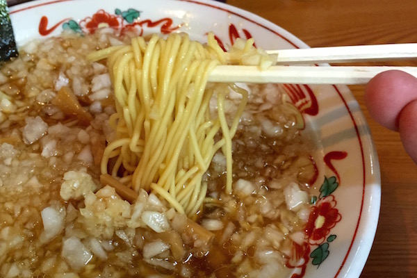 普通の醤油ラーメンに玉ねぎが乗ってるだけだよ