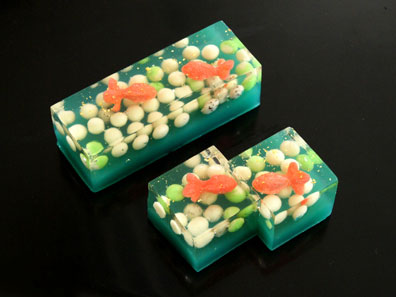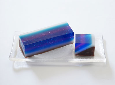 赤坂のとらやとかでもこんな感じのアートっぽい羊羹売ってるよね。見た目が素晴らしいけど、値段も凄いので買ったことはないけど。