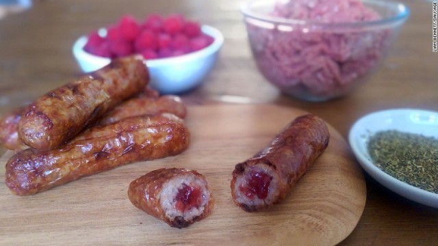 ドーセージはドーナッツとソーセージのハイブリッド食品。豚肉をベースとしたソーセージの中心部に、ラズベリージャムやカスタードクリームなど甘いフィリングが入っている。