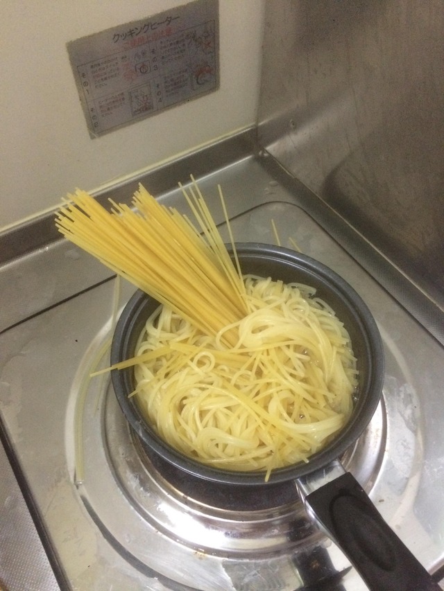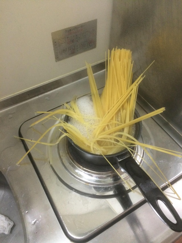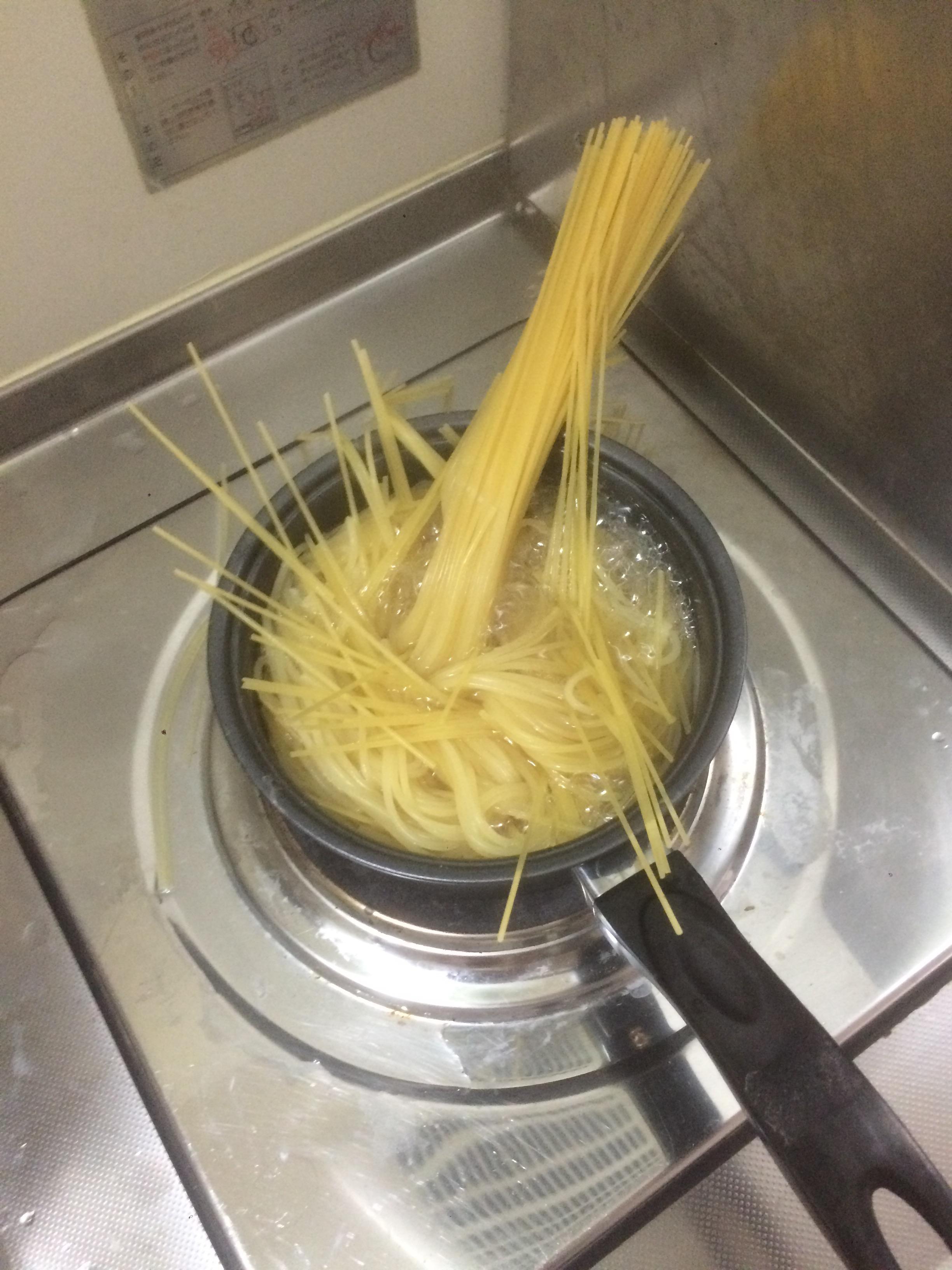 折るの嫌だから一人暮らしの頃はフライパンで茹でてたな