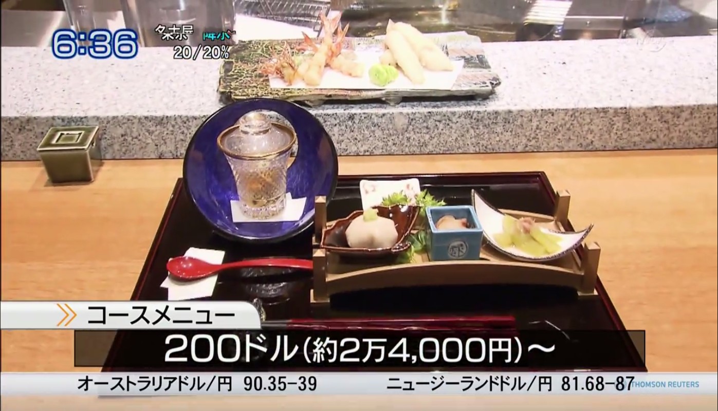 国内でも天麩羅をコースで食ったら一万円くらい最低かかるだろ。