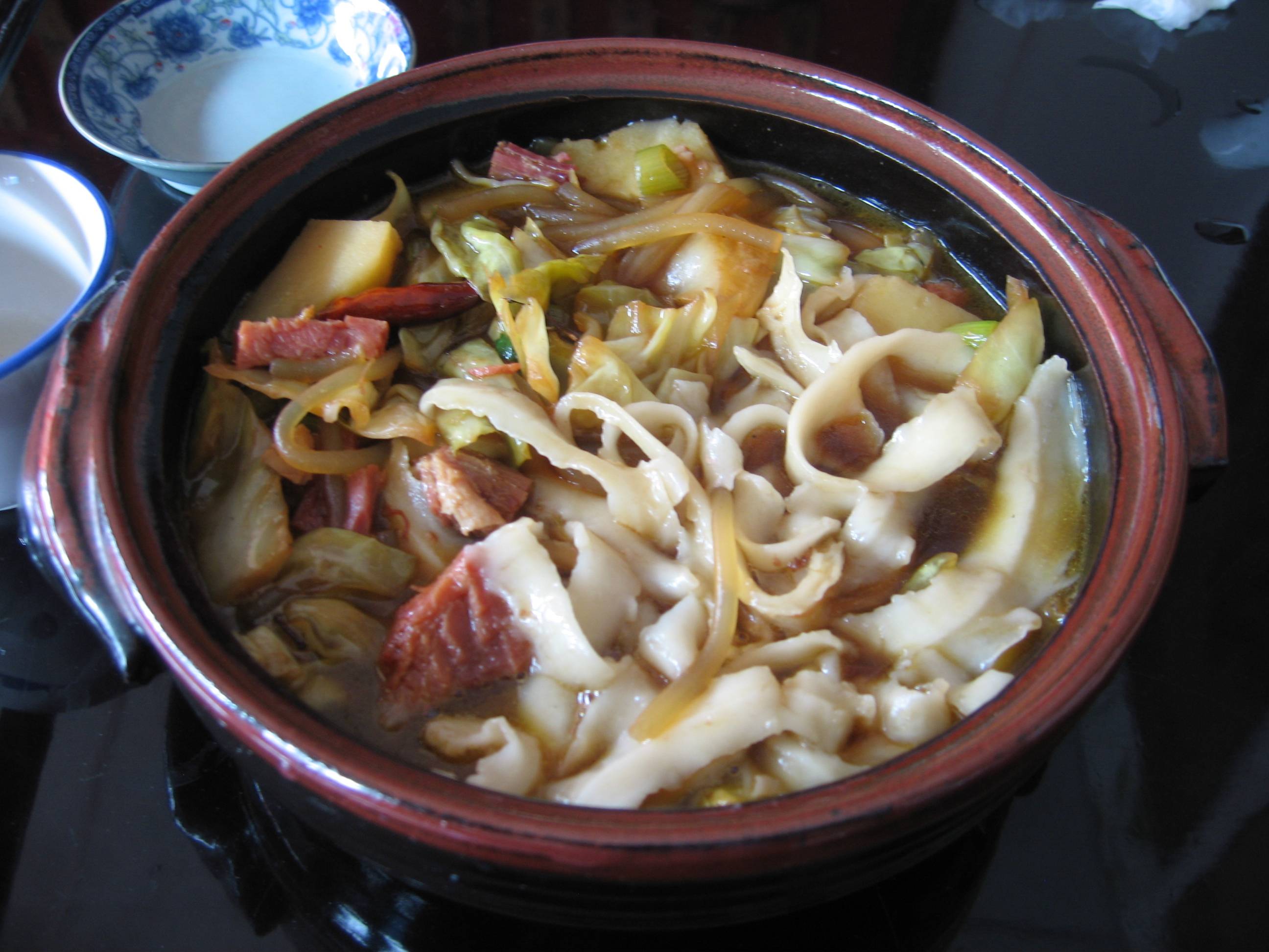 小麦粉を練った塊を小刀で削って湯が煮えたぎった鍋に直接放り込んで作る麺。
