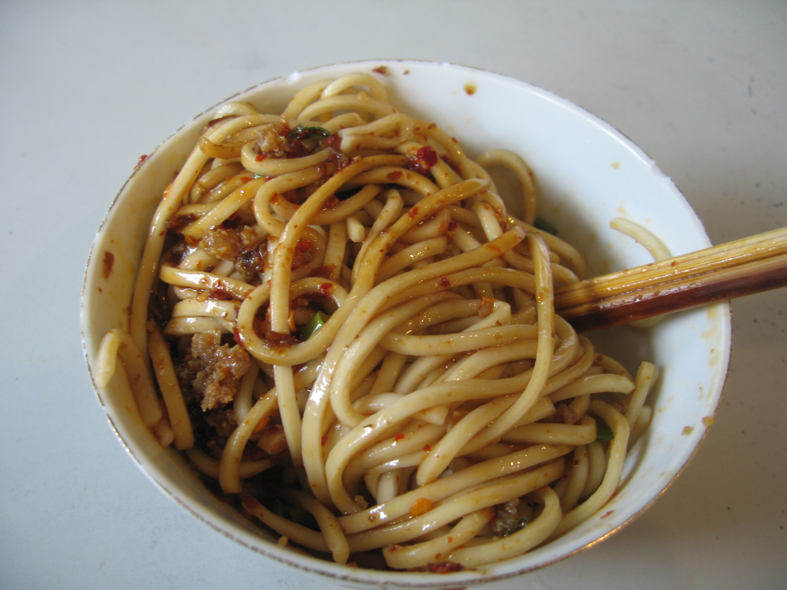 これは湖南省のもの。中華最辛を誇る湖南料理は、麺といえども容赦しない。
