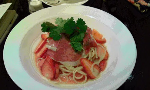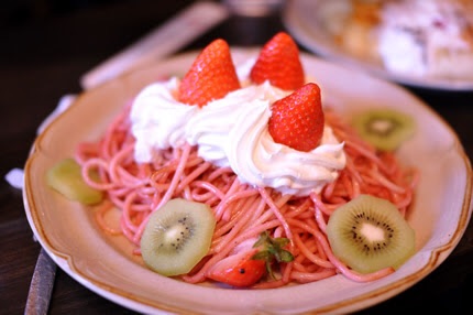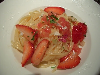 イチゴじゃないけど桃入りトマトソーススパゲティはわりと美味かった
