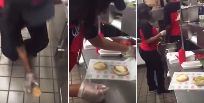 そこの従業員が客に提供するハンバーガーのバンズを意図的に床に落としモップのように擦りつけ、そのままハンバーガーを作ったのだ。
