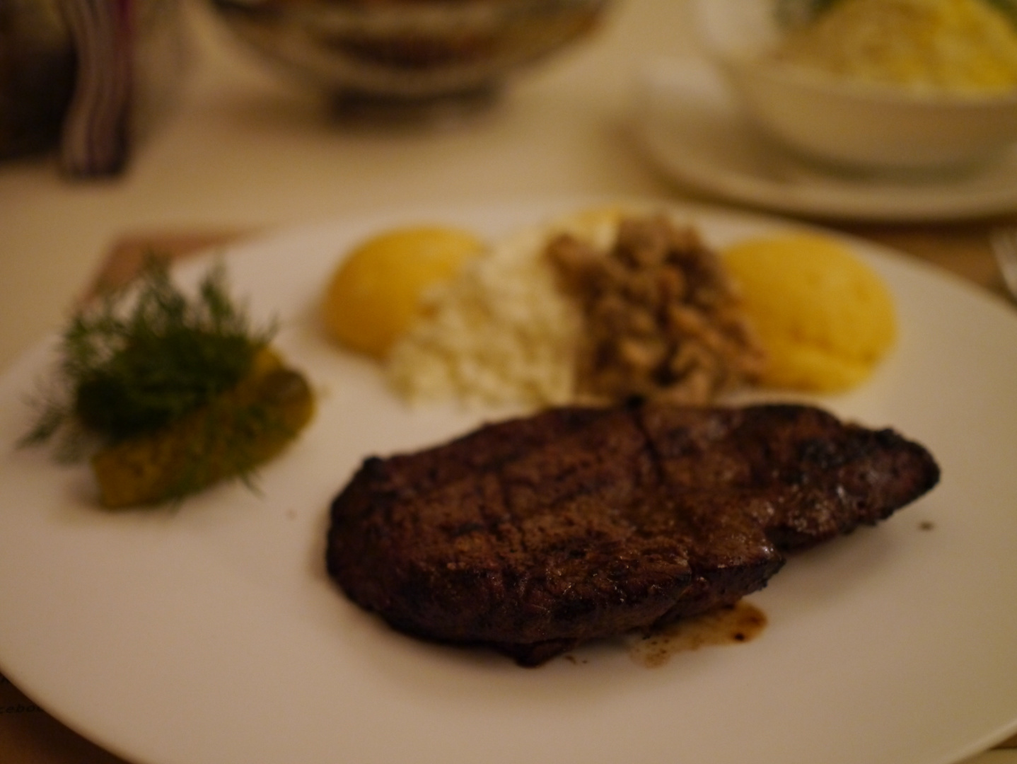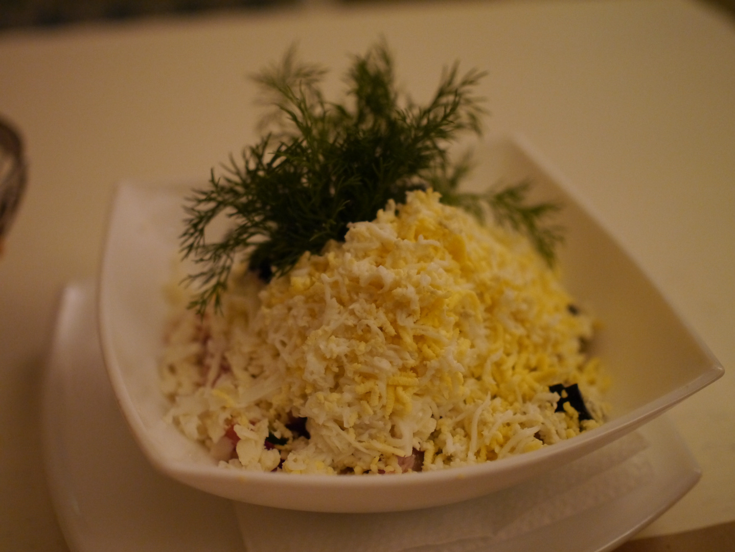 鶏肉の焼いたのとロシアっぽいサラダと謎のコーラ