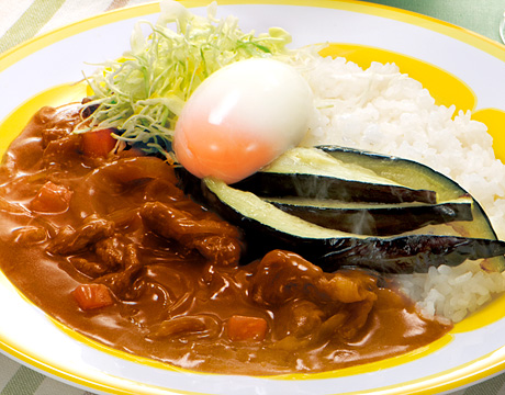 カレーに肉が入ってない場合、蛋白質補給の意味で温玉乗せる