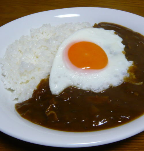 まさに今日の昼飯は目玉焼きカレーやったわ