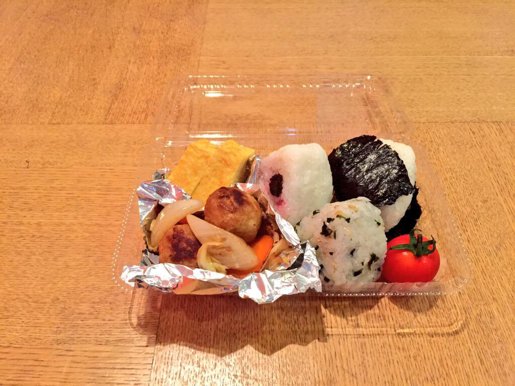 おにぎり弁当!つくねと野菜のあっさりいため!卵焼き付き!150円!