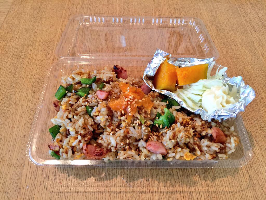 焦がし醤油チャーハン!カボチャの旨煮とサラダを添えて!150円!