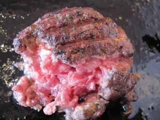 ひき肉だと細菌を内側まで練りこんじゃうから、火を通さないと食中毒になる可能性があるって話
