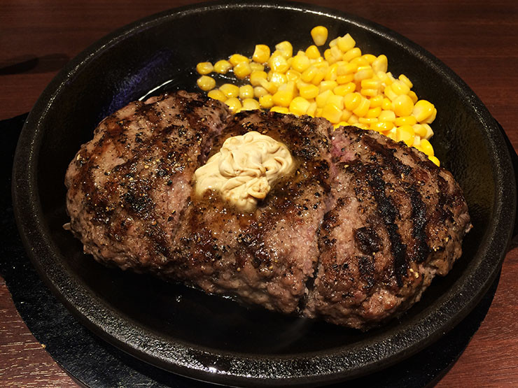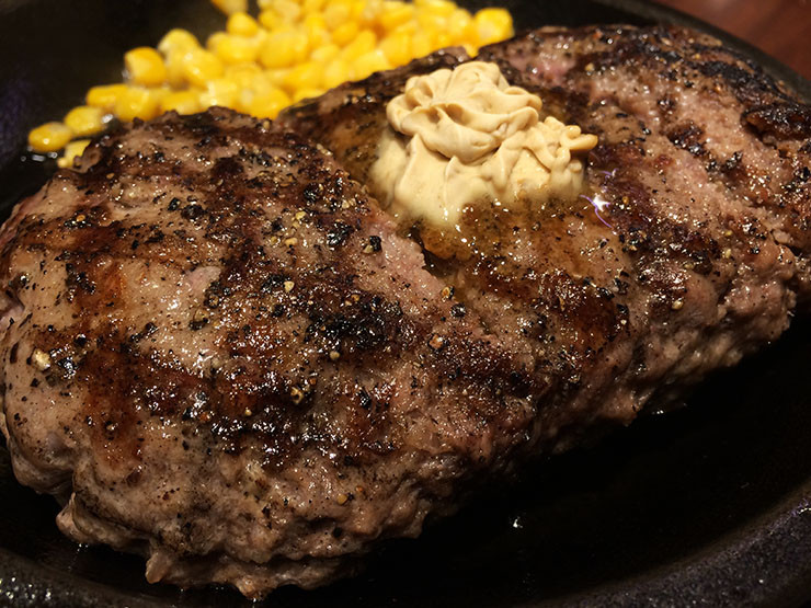万世のハンバーグは脂身の切れはし入ってるのが好きw