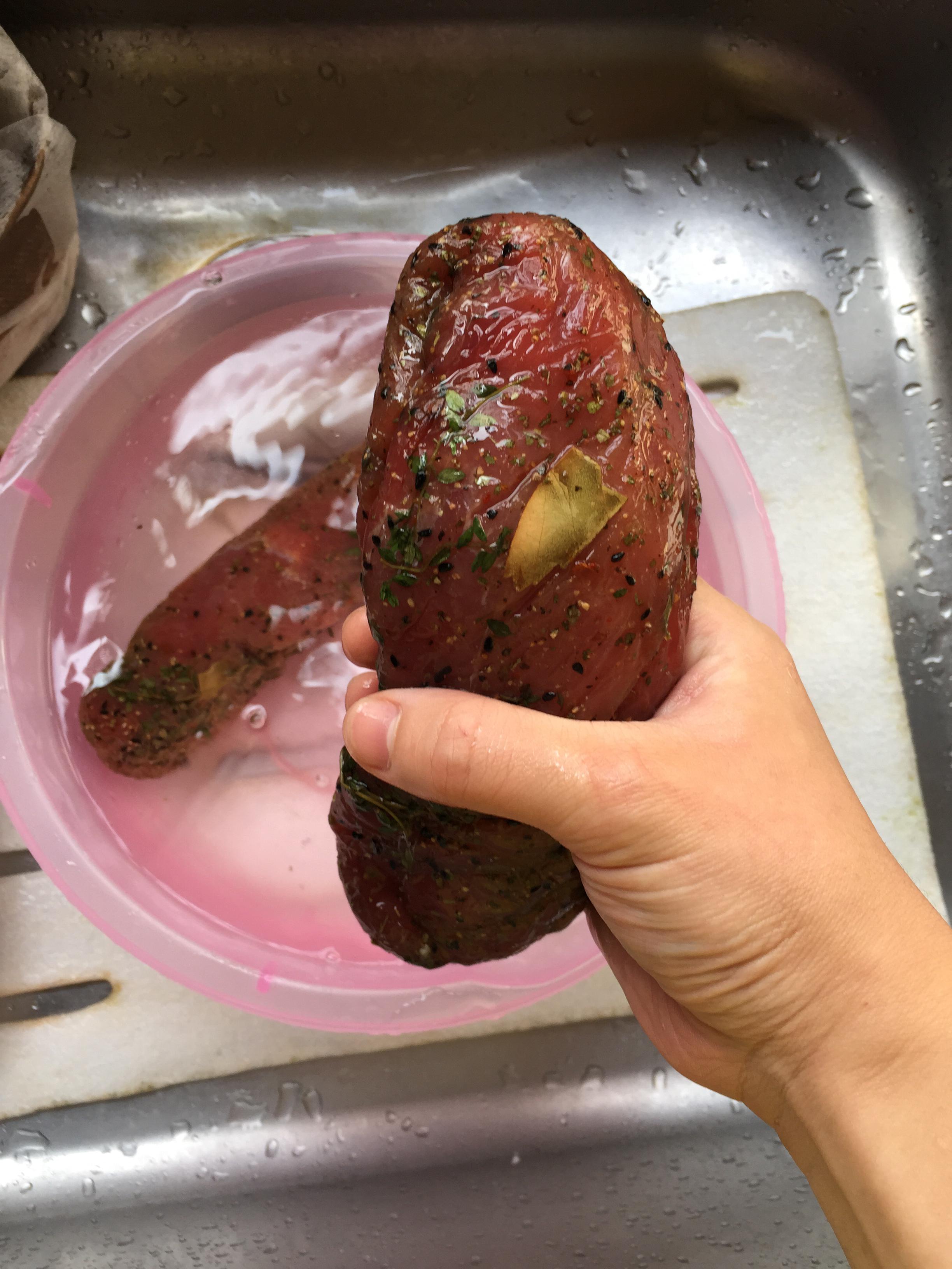 マスタード塗って燻製鍋で火を通して一晩冷蔵庫