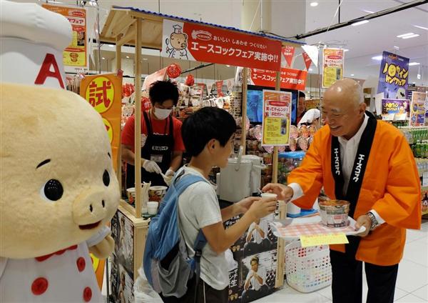 sssp://img.2ch.sc/ico/hare.gif エースコックが幕張でフェア 新商品1千食を配布  エースコック(大阪府吹田市)は12日、試食会「エースコックフェア」を千葉市美浜区のショッピングセンター「イオンモール幕張新都心」で開催した。 エースコックの試食フェアで、新商品を買い物客に配る村岡寛社長(右)=12日、千葉市美浜区の「イオンモール幕張新都心」 続きはソース http://www.sankei.com/economy/news/150912/ecn1509120020-n1.html
