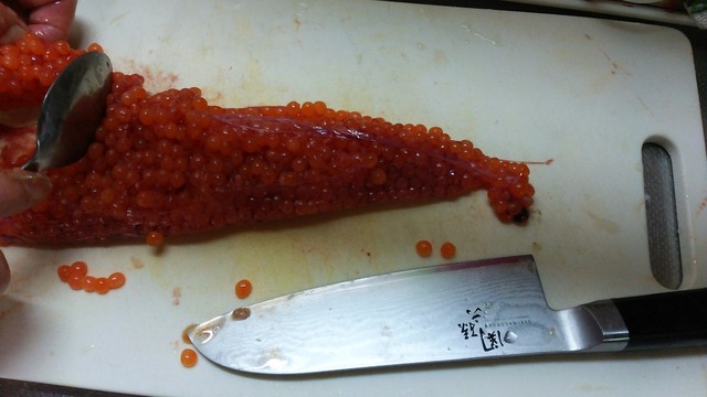 固まったて卵巣に入ったままのヤツは筋子