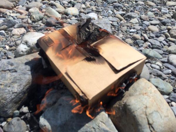 段ボールを、かまどがわりにするのかと思った