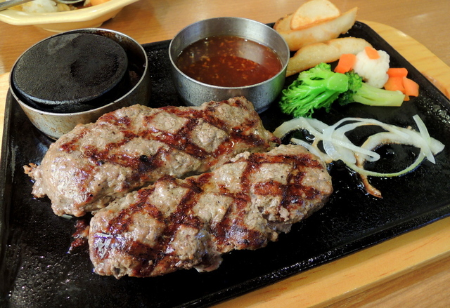 ココスのビーフハンバーグステーキの方がうまいよ ビッグボーイの大俵は真ん中が冷たかったりするし