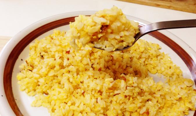 あらかじめ溶き卵と白飯を混ぜてから炒める黄金チャーハンは、確かに失敗は無いのだが、食感が微妙なんだよな。
