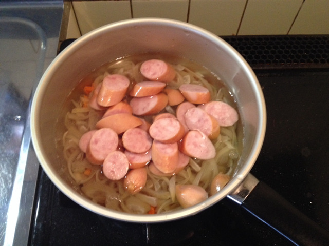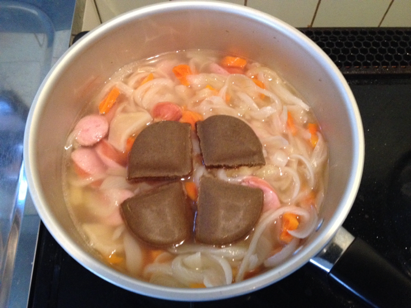 沸騰したら火を止めルーを入れて混ぜます。 あとは食べるまで放置。