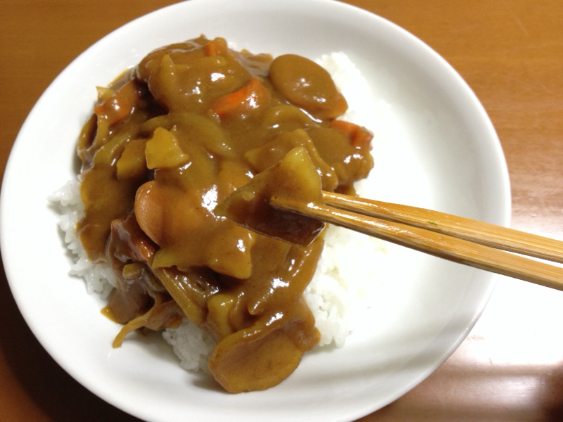 味は普通のカレー。 食感はジャガイモとニンジンはほんの少しモソモソ、ボソボソした感じはするけど全く気にならないしよく戻ってる。 タマネギはシャキシャキしていて干し野菜とはわからない。 水の分量が難しいのが難点。 今日は箱裏のレシピで、水を倍の理解でしたけどこれくらいがちょうどいいみたいだな。