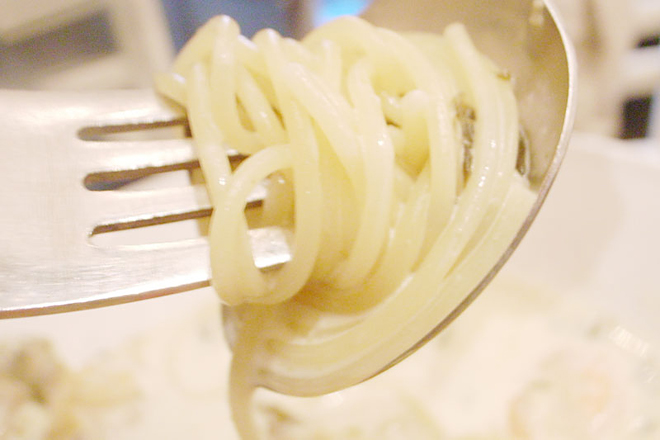 スパゲッティは箸で食うとずるずるやりそうになるから、フォークで巻いて食べるといい