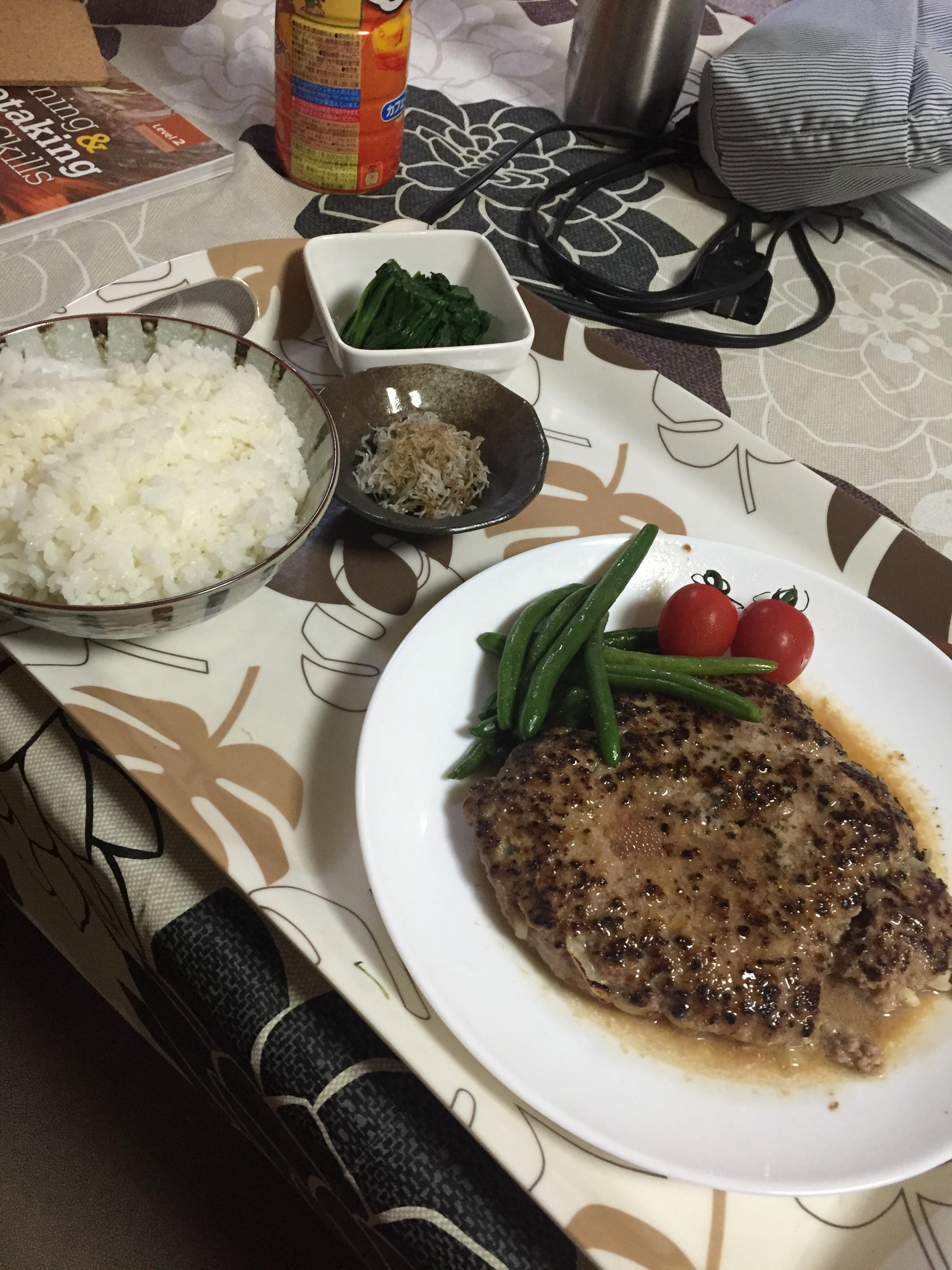 野菜が少なすぎハンバーグとちょっとした山菜だけとか流石にあかん。。。