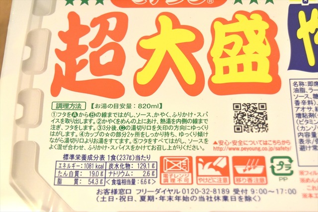 「ペヤングソースやきそば超大盛り」の販売が11月30日から関東エリアではじまった。 異物混入騒動で通常サイズと同じく昨年12月に販売中止となっていたため、1年ぶりの復活となる。 流通の関係でまだ十分に出回っていないらしく、最初に探したコンビニでは陳列スペースだけ用意されていて肝心の商品がなかった。 その後何軒か回ってやっと入手できたぞ。 カロリー1081kcal! 使うお湯は820ml 続きはソース http://www.excite.co.jp/News/bit/E1448961167009.html