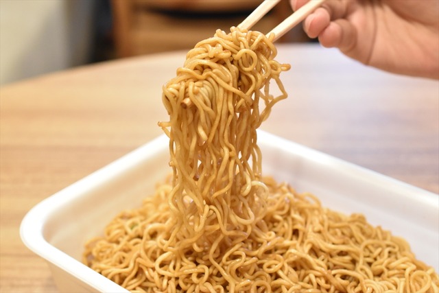 ペヤング超大盛りを湯切り時間早めで作ってフライパンで焼くとうまいよ