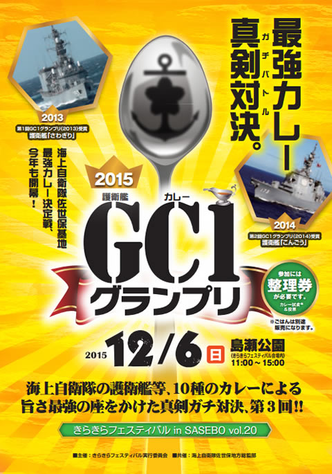 海上自衛隊の艦船で作るカレーの味を競う「2015GC(護衛艦カレー)1グランプリ」が6日、佐世保市島瀬町の島瀬公園であった。