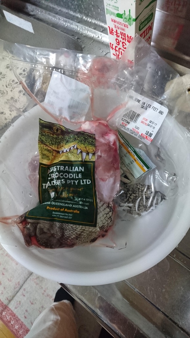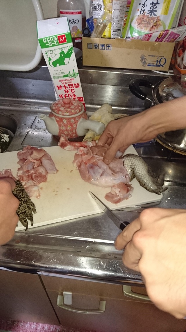 食肉加工済みかと思ったら、割と普通にワニの腕やん・・・