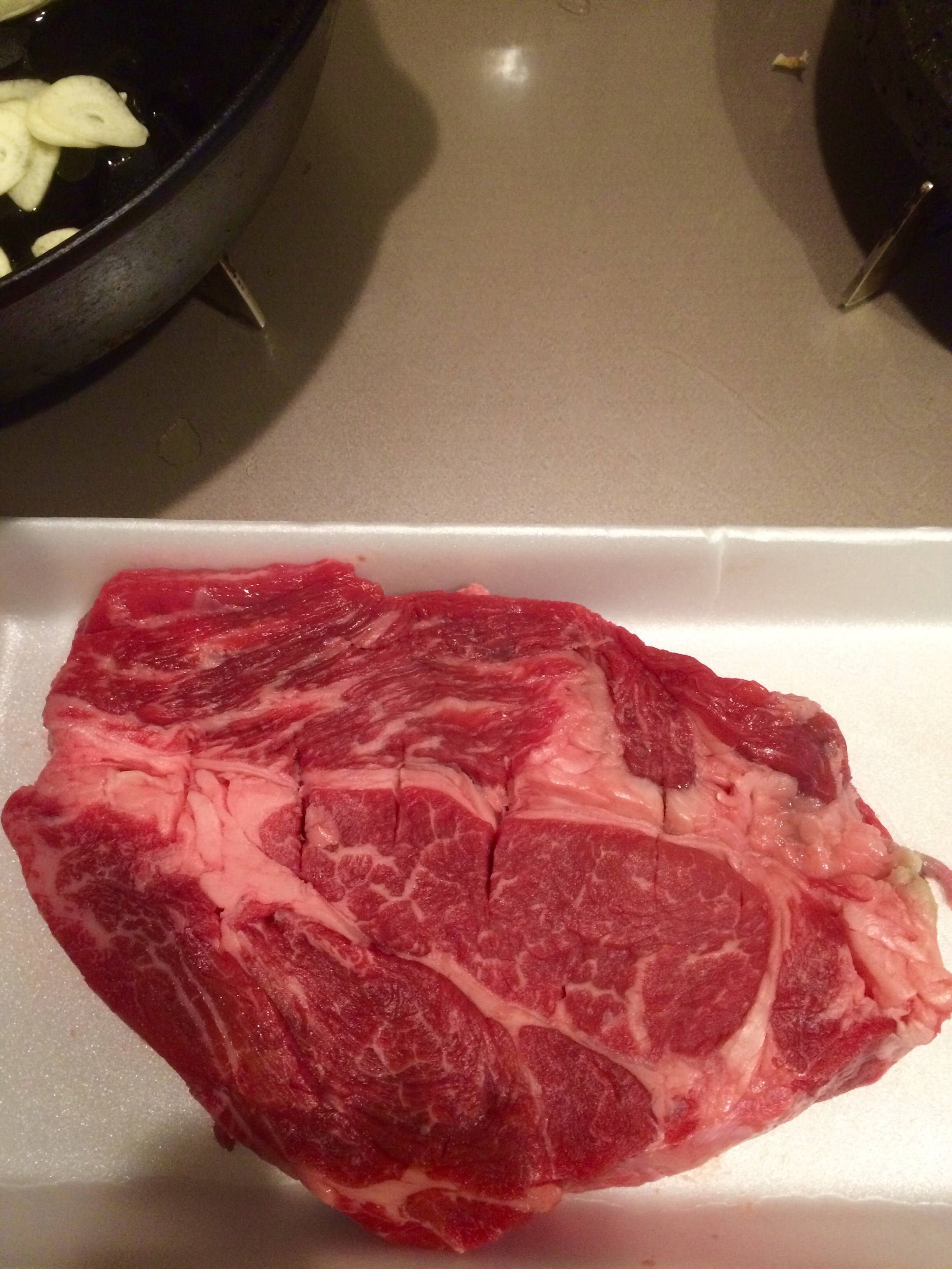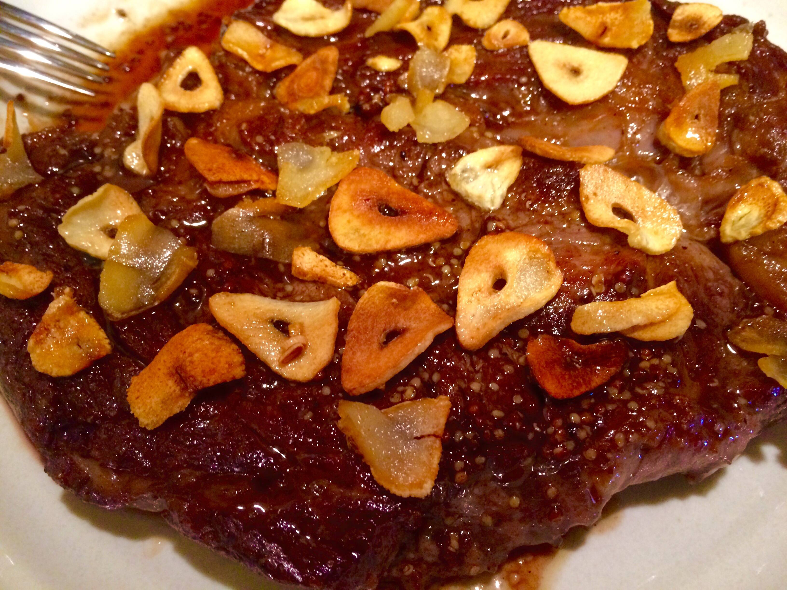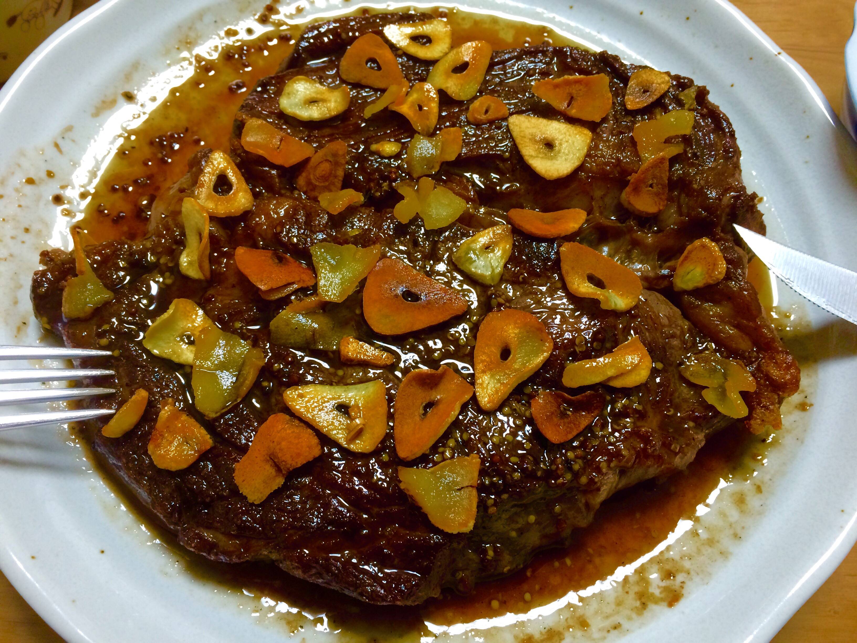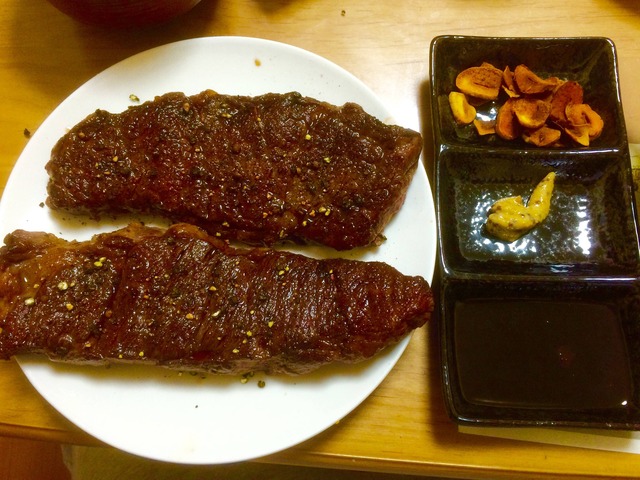 いつもは塩とブラックペッパーとマスタードとかで食べてたけど、今回はちょっと変えてみたくてガーリックステーキにしてみた