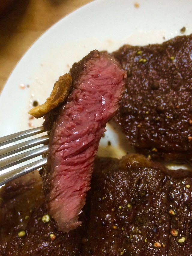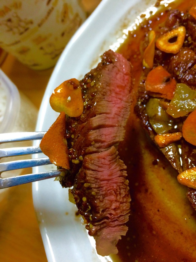 肉の厚みにムラがあったから、ミディアムレアっぽいところからレアっぽいとこもあって、食感の違いも楽しめたよ