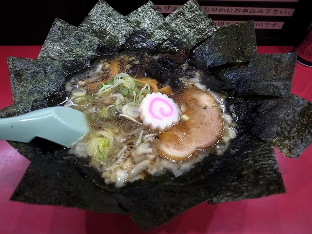 最初っから全部沈めると海苔の香りがわかりづらくなるから、食う直前にスープに浸してから食ってる